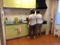 晩ご飯の支度を仲良くする2人