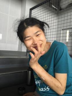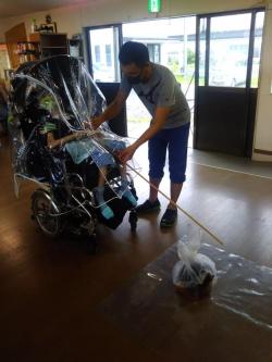 おひさまグループの午後の活動は散歩をしています。 運動不足な仲間もいるので時折走ることもあったりしています。 その散歩活動が大好きな小島さん。今日はたくさん走ってたのしく活動に参加ができました。 休憩時間に職員が「まみさ~ん」と呼びかけてみるとすっきりいい笑顔♪